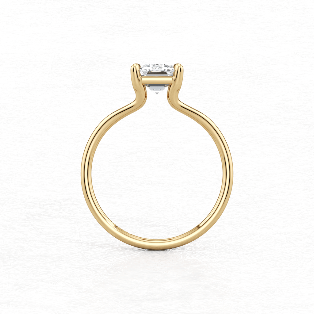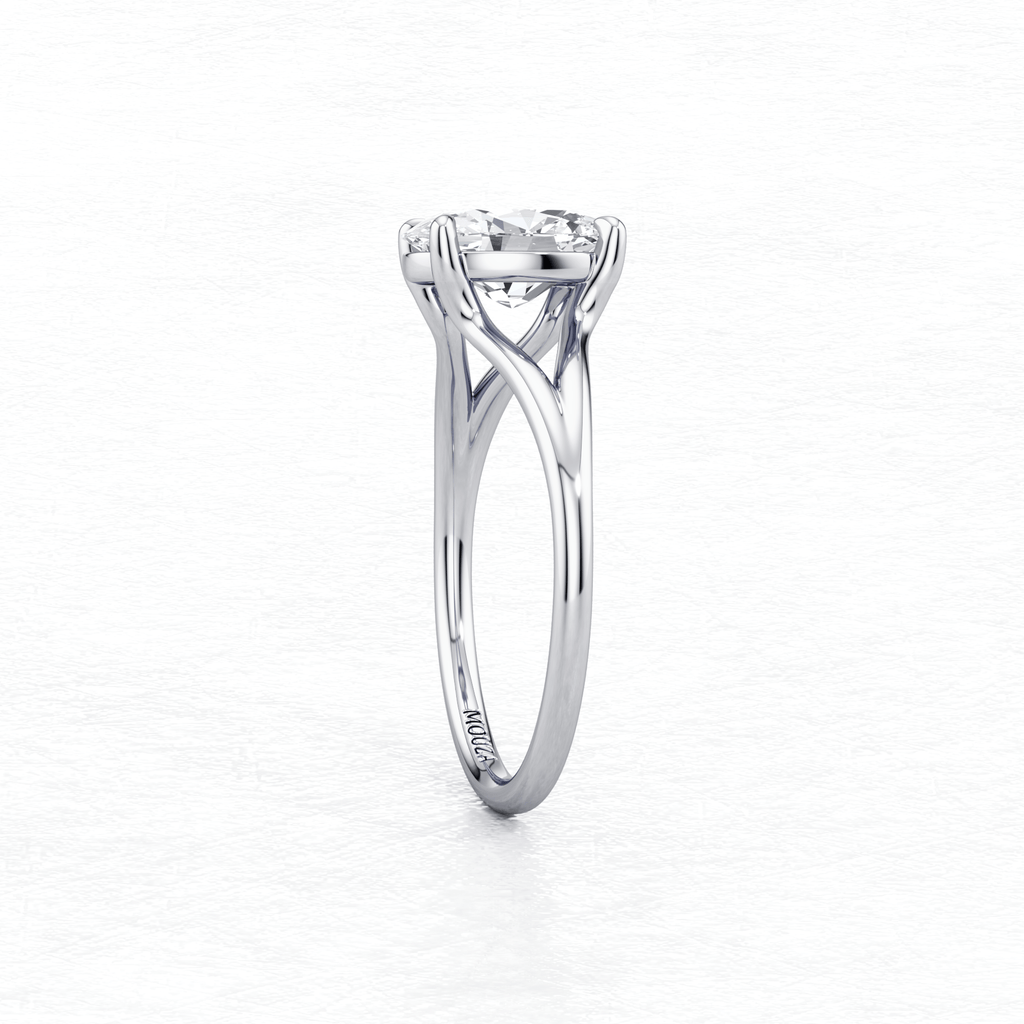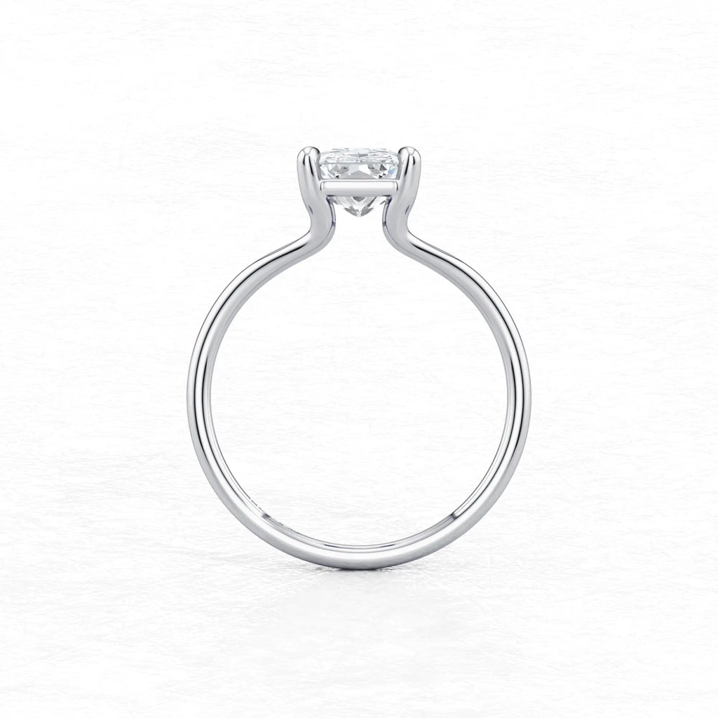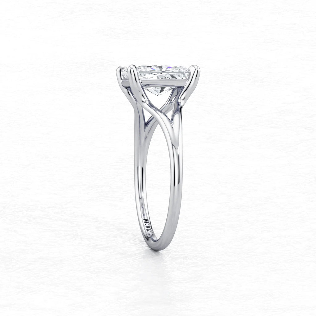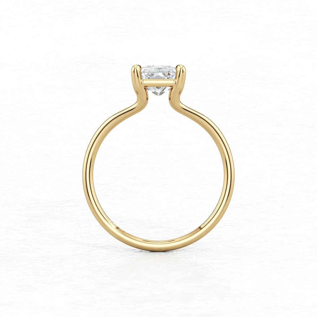 Maggy Solitaire Engagement Ring is a sleek and contemporary design, featuring a split shank that elegantly frames the centre stone. Crafted to set lower to the finger, it offers a clean and a comfortable fit for everyday wear.