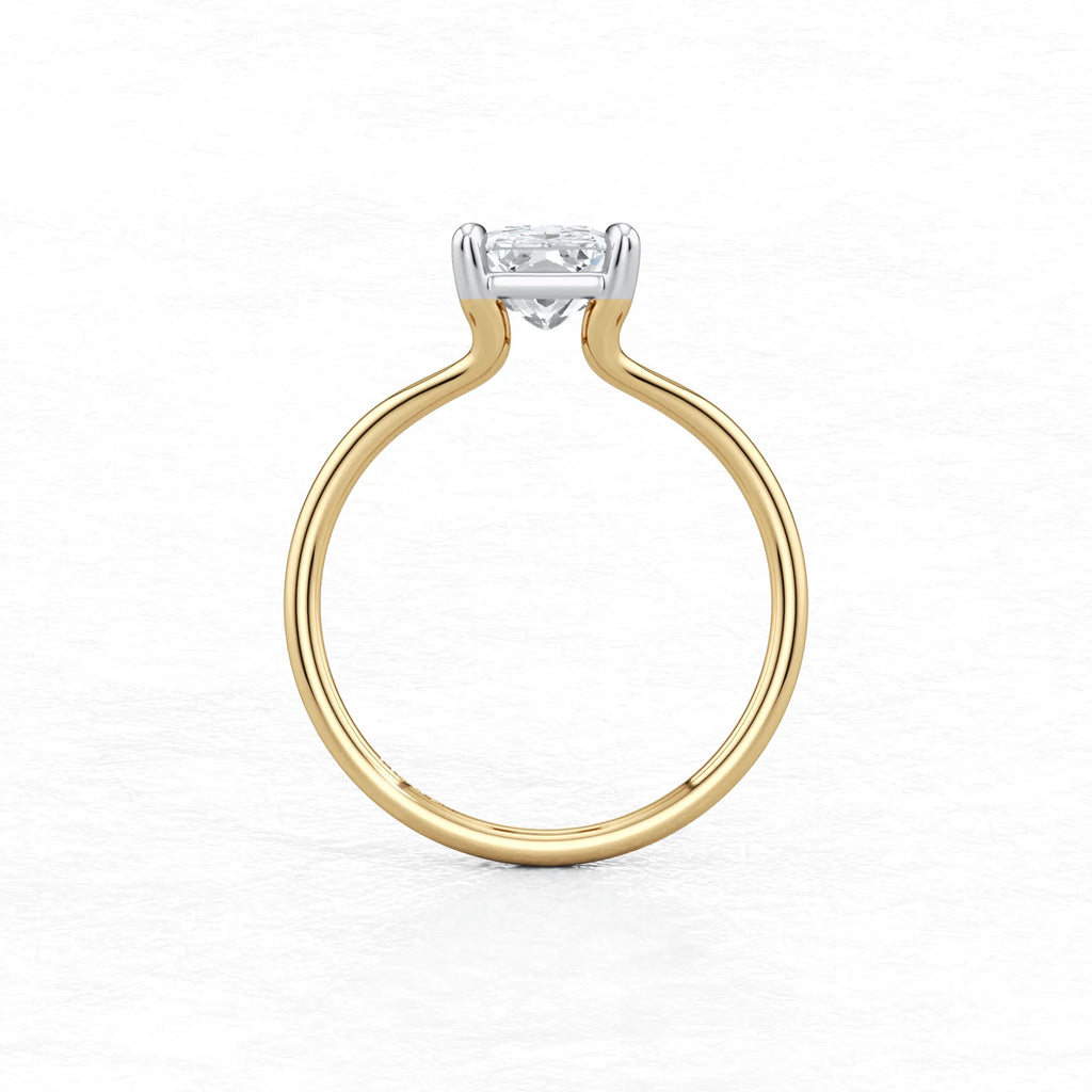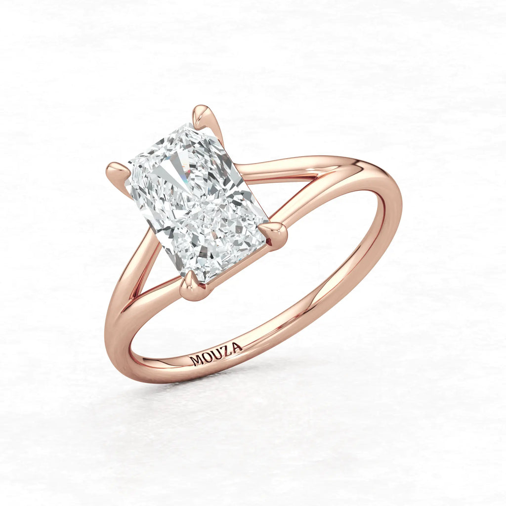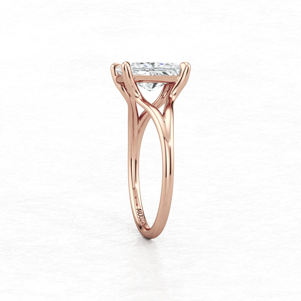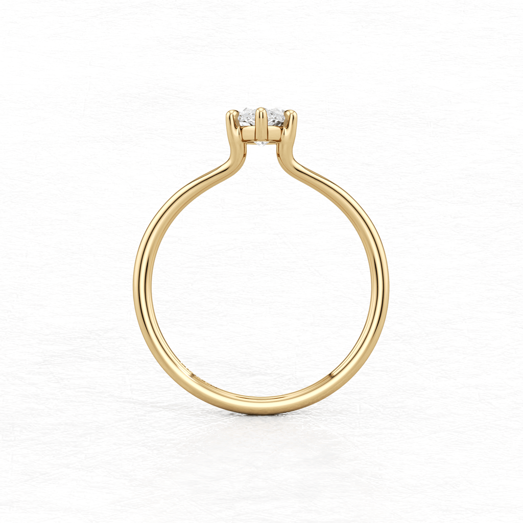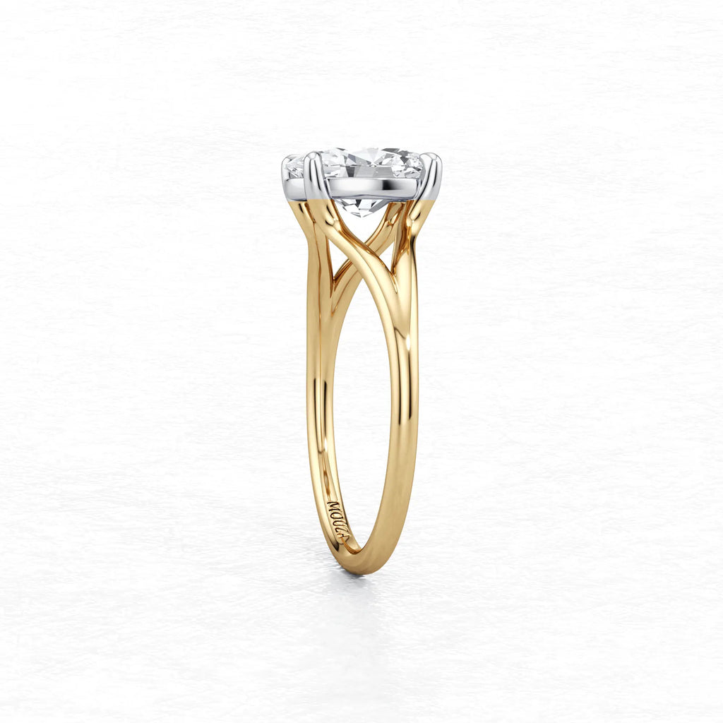 Maggy Solitaire Engagement Ring is a sleek and contemporary design, featuring a split shank that elegantly frames the centre stone. Crafted to set lower to the finger, it offers a clean and a comfortable fit for everyday wear.