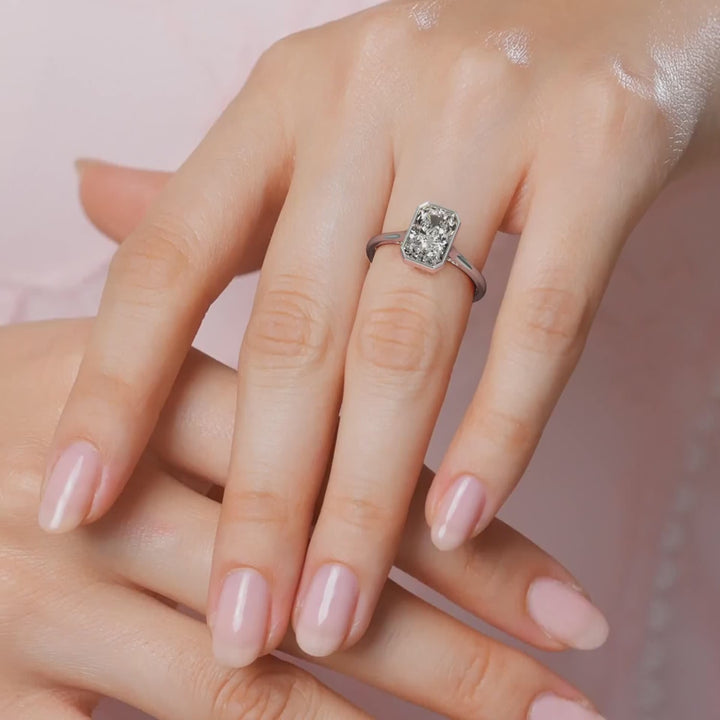 Alicia Bezel Set Engagement Ring is a delicate and elegant design, featuring a fine, dainty bezel that securely frames the centre stone while maintaining a sleek and minimalist look. Diamonds set on the bridge add a subtle touch of sparkle, and the fine thin band enhances the refined, graceful silhouette.