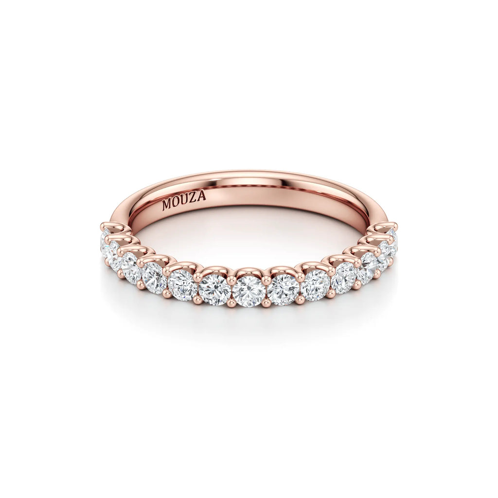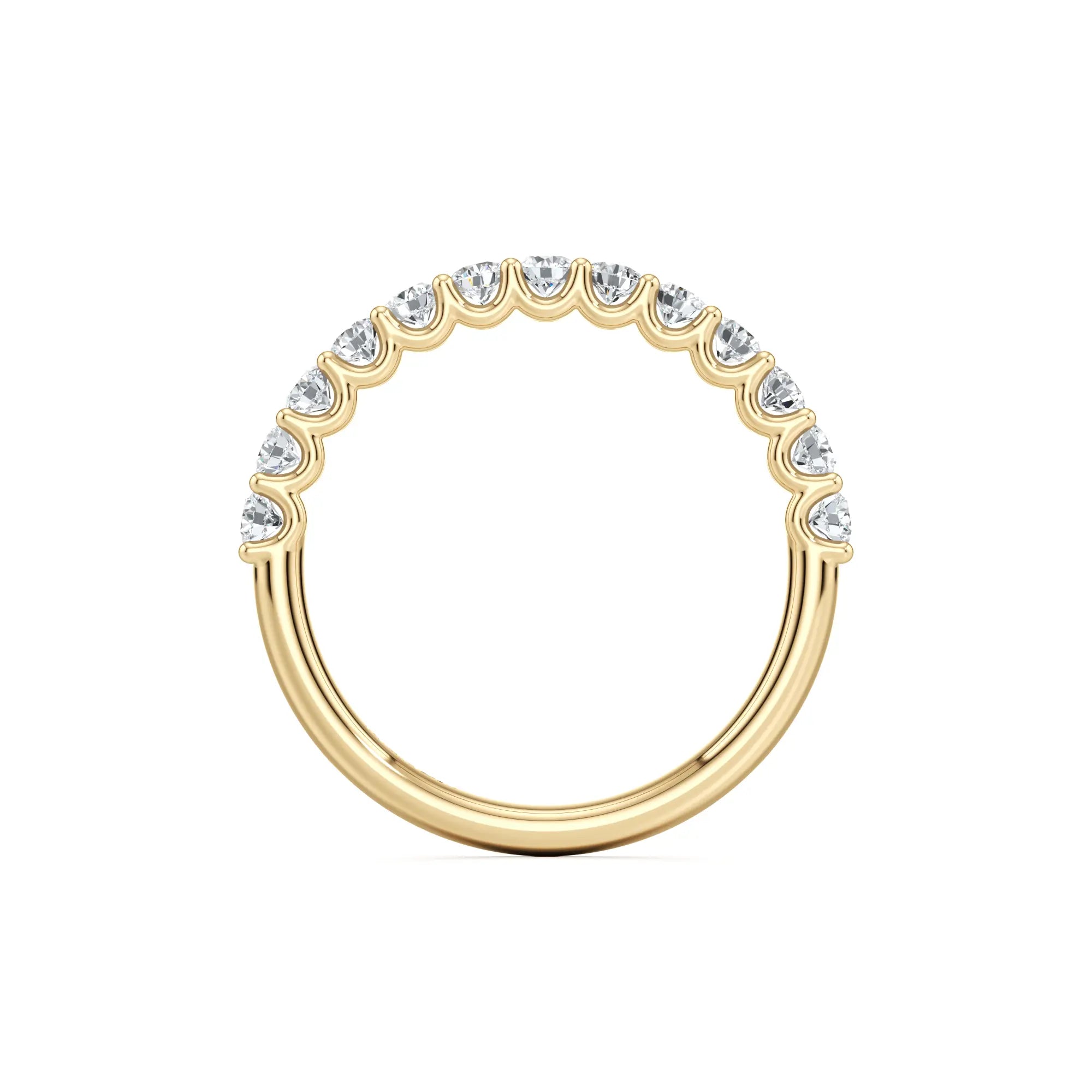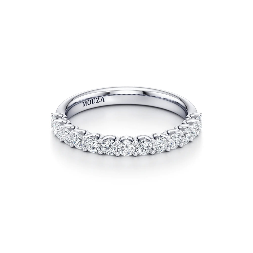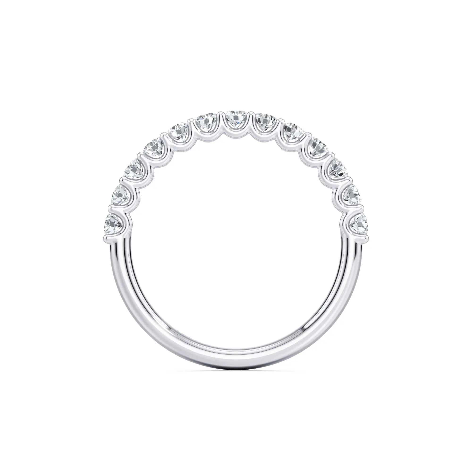 Lavinia is a balanced 2.5mm diamond wedding band featuring a signature U-shape setting. The open-profile design ensures that light reaches each diamond from every angle, significantly enhancing the ring's overall sparkle. With its mid-range width.